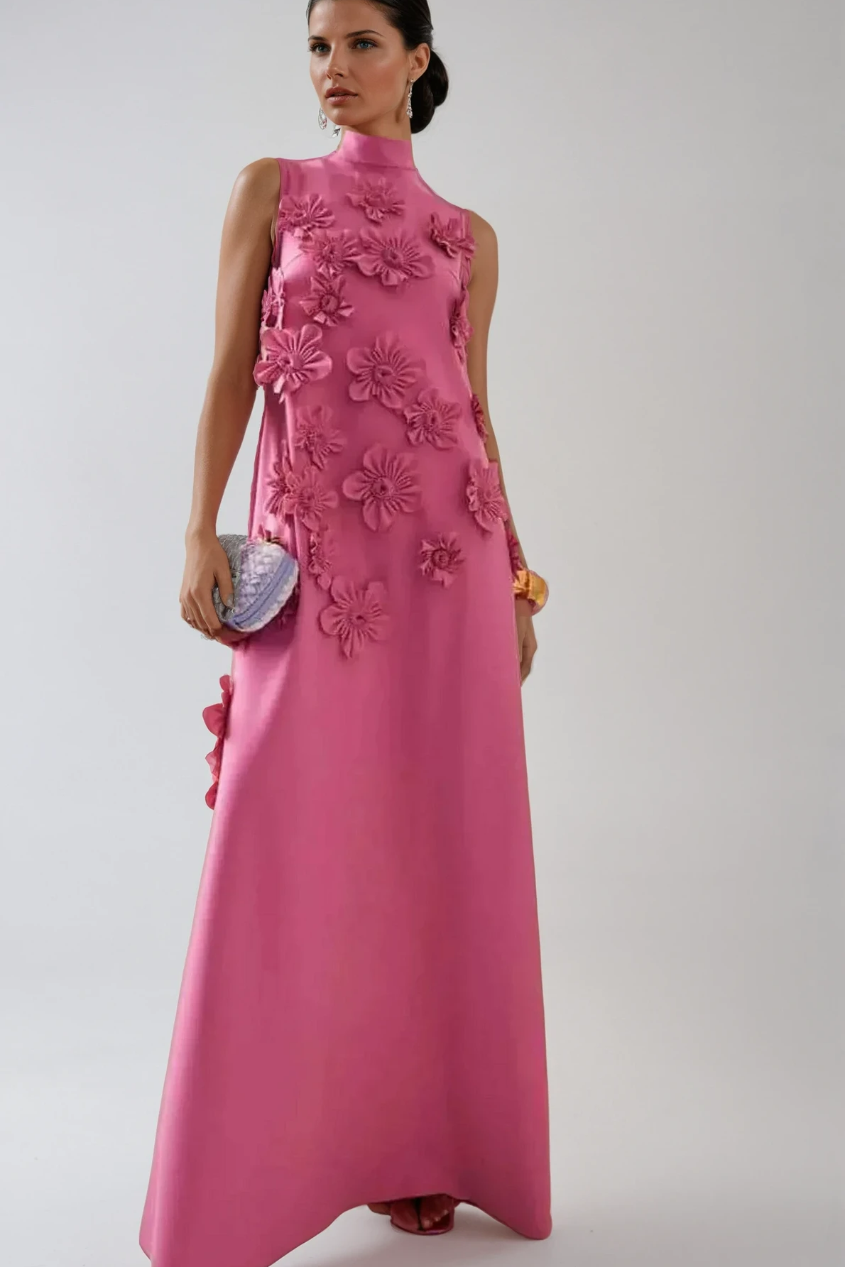 Floral Embroidered Sleeveless Evening Maxi Dress