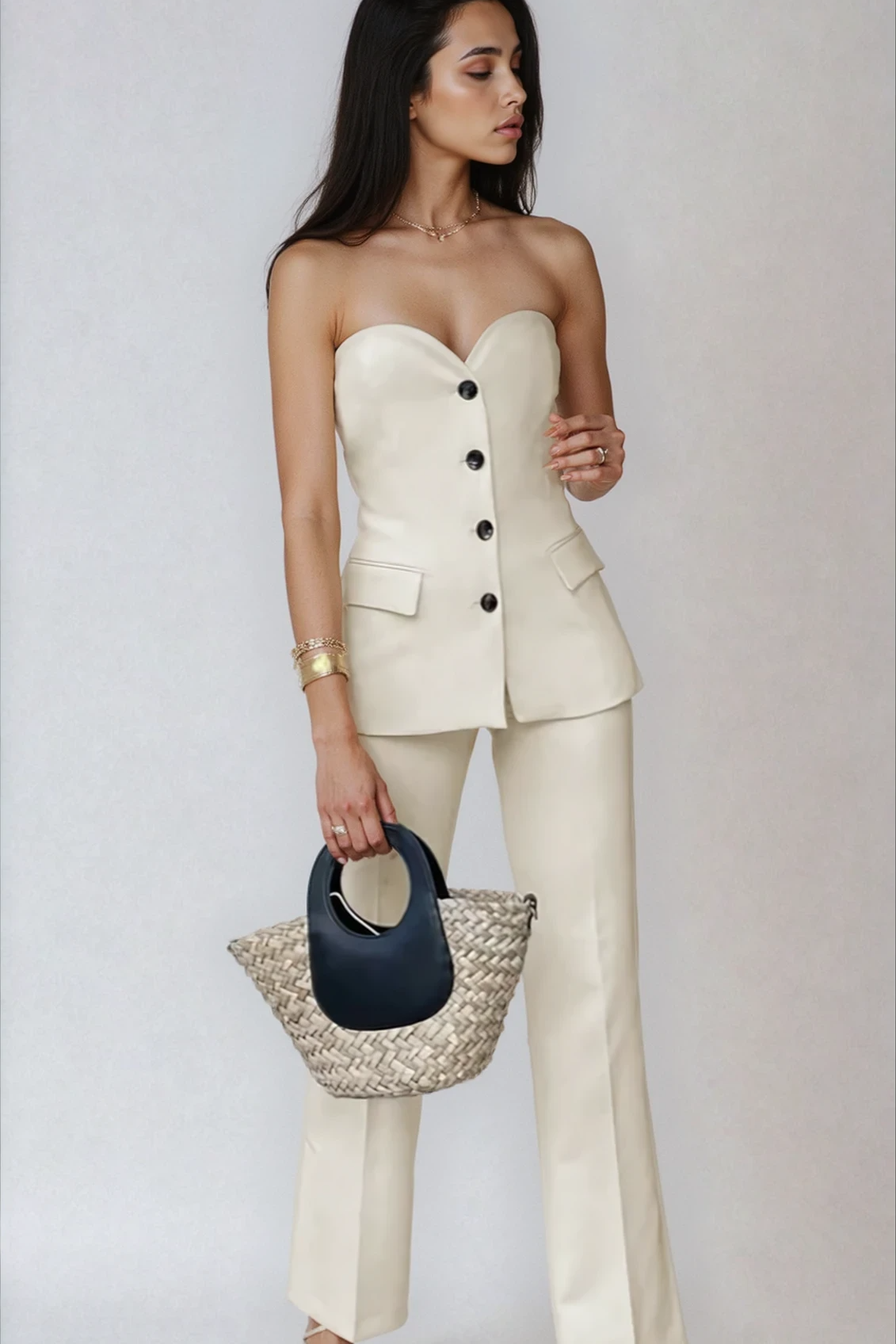 Elegant Strapless Tube Top With Wide Pants Set