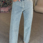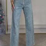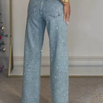 show ▼Classic denim with a shimmering twist. These high-waisted straight-leg jeans are embellished with all-over diamanté detailing, adding just the right amount of sparkle to your everyday look. Cut from structured cotton denim, they combine comfort, shape and statement style—perfect for dressing up or down.