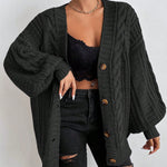 Cosy meets effortless cool. This chunky knit cardigan is designed with dropped shoulders, slouchy sleeves and a relaxed oversized fit—perfect for layering on breezy days or slow evenings at home. The cable knit detailing and ribbed trim give it timeless texture with a modern edge.