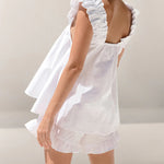 show ▼Light, airy, and undeniably charming—this ruffle shorts set is your go-to for effortless summer style. Made from a soft linen blend, the set includes a flouncy sleeveless top with ruffled straps and a relaxed silhouette, paired with matching shorts featuring a subtle frill hem.