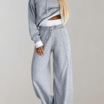 2-Piece Hoodie Tracksuit Set with Wide-Leg Trousers for Women