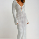 show ▼Effortless and elegant, this crochet dress is your ultimate summer layer. Designed with a flattering V-neckline and statement open back, its airy weave and floor-length silhouette bring the perfect mix of coverage and allure—ideal for poolside lounging or sunset cocktails.