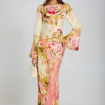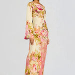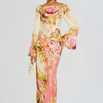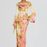 show ▼Statement elegance in full bloom. This floral-print maxi dress features dramatic bell sleeves, a flattering column silhouette, and lightweight viscose fabric—perfect for garden weddings and sunset soirées.