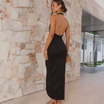show ▼Effortlessly chic and timelessly feminine — this halterneck midi dress brings a sense of refined ease to any occasion. Crafted from softly textured fabric, it features delicate draping that flatters the figure and a wrap-style skirt that creates graceful movement. The fresh pastel green hue adds a modern yet romantic touch, perfect for summer events or evening gatherings.