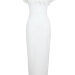 show ▼Graceful, sophisticated, and effortlessly striking — the White Swan Feather Gown embodies timeless glamour with a modern edge. Crafted from a smooth, structured fabric that sculpts silhoutten, this strapless gown features a fitted bodice adorned with soft feather detailing that adds texture and movement. The floor-length design elongates the figure, making it the perfect choice for galas, red-carpet events, or an unforgettable evening look.