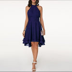 show ▼Designed for moments that call for timeless femininity, this sleeveless chiffon dress features a high halter neckline and a softly layered hemline that moves beautifully with every step. The cinched waist creates a flattering silhouette, while the airy fabric adds elegance and ease—perfect for weddings, celebrations, or evening occasions.