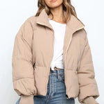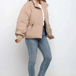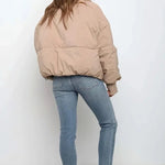 Cold days made cosy. This quilted puffer jacket is designed with a high neckline, ribbed cuffs and a relaxed fit that layers easily over winter staples. Lightweight yet warm, it’s the perfect balance of function and everyday style.