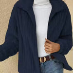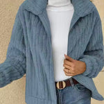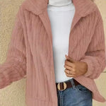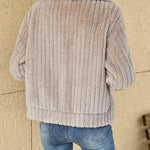 Designed for warmth and effortless chic, this beige faux fur jacket combines plush texture with a relaxed silhouette. The soft, ribbed finish adds subtle structure, while the zip closure and cozy collar make it a go-to piece for cooler days and casual outings.