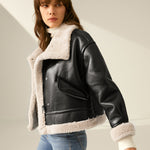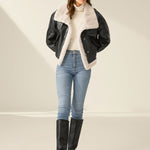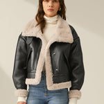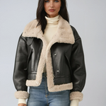 Women's Faux Leather Flight Jacket with Sherpa Lining