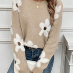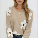 Designed for comfort with a playful twist. This cozy knit sweater adds a cheerful touch with its oversized floral motifs against a neutral base. With its relaxed fit, ribbed trims and soft texture, it’s the perfect piece to brighten up your everyday wardrobe.