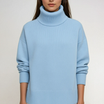 Cosy up in this cloud-soft oversized turtleneck sweater. Designed with a slouchy silhouette, chunky ribbed trims and a generous roll neck, it’s your cold-weather go-to for effortless warmth and comfort—whether at home or on the go.