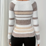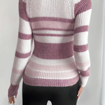 Classic stripes with a flirty fit. This slim-fit ribbed sweater features soft colour blocking and a flattering scoop neckline—bringing a feminine twist to everyday knits.