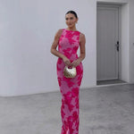 Floral Embroidered Sleeveless Evening Maxi Dress