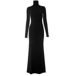 Formal Black Evening Long‑Sleeve Turtleneck Maxi Dress