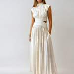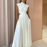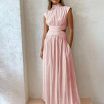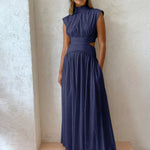 show â–¼Understated elegance with a twist. This maxi dress pairs classic lines with modern cut-outs, crafted in a fluid silhouette that moves beautifully with every step. The high mock neck adds a refined edge while the waist cut-outs give it effortless allure.