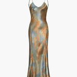 show â–¼Effortless allure with a touch of Mediterranean glamour. The Sunset Satin Backless Dress features a striking open-back design and a fluid silhouette that drapes beautifully over the body. Crafted from soft satin with warm, marbled tones inspired by sunset hues, this dress is perfect for summer evenings and elegant getaways.