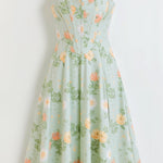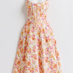 show ▼Designed for summer romance with a whimsical twist. The ‘Dahlia’ floral jacquard midi dress features a structured bustier-style bodice with soft straps and a subtle side slit, while the full, flowing skirt in delicate jacquard adds texture and graceful movement—perfect for your next garden party or weekend brunch.