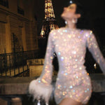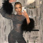 show â–¼Designed for unforgettable nights. The Mayra Cocktail Mini Dress is crafted from shimmering fabric that catches the light from every angle. With its sleek mini length, long sleeves, and playful feather cuffs, it strikes the perfect balance between elegance and bold glamour. A true statement piece, ideal for celebrations where all eyes are on you.