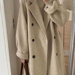 show ▼Designed for timeless layering and effortless polish, this belted wool coat is a wardrobe staple that brings structure and softness in equal measure. Featuring a relaxed, oversized silhouette with classic notched lapels and tonal buttons, it’s made to elevate any winter outfit with ease—perfect for stepping out in style from desk to dinner.
