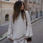 Designed for cozy sophistication, this oversized black sweater combines relaxed comfort with timeless minimalism. Featuring voluminous sleeves and a soft, textured knit, it’s the perfect staple for layering or wearing on its own for an effortlessly chic look.