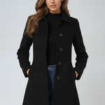 show ▼Designed for timeless sophistication, this classic black coat offers a refined silhouette that complements both casual and formal looks. The tailored fit and structured collar lend a polished finish, while the soft wool blend ensures comfort and warmth throughout the season.