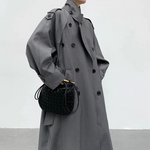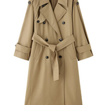 Designed for comfort with a playful twist. This classic longline trench coat brings timeless tailoring with a modern oversized fit. Featuring double-breasted buttons, a detachable waist belt, and storm flap details, it’s a wardrobe icon that works across seasons. Available in warm camel and deep charcoal grey.