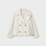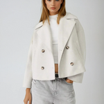 show ▼Designed for modern layering. This cropped double-breasted jacket blends a boxy silhouette with clean tailoring for a polished yet effortless look. Crafted in a lightweight wool blend, it’s versatile enough to style from day to night. The oversized lapels and structured shoulders add edge, while the shorter cut makes it perfect for pairing with high-waisted bottoms.