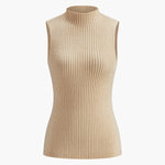 show ▼Designed for effortless layering and timeless texture. This sleeveless knit top features a structured ribbed construction and mock neck, combining a cosy touch with a streamlined silhouette—perfect for dressing up or down year-round.