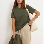 show ▼A wardrobe essential redefined in a flattering, clean silhouette. This everyday tee features a classic crew neckline, soft cotton feel, and a straight fit that makes styling effortless—whether dressed up or down.