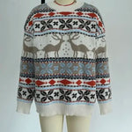 Wrap yourself in cozy comfort with this Fair Isle-inspired sweater featuring soft reindeer and snowflake motifs. Knitted in soothing tones of cream, beige, sky blue, and rust, it captures the essence of a calm winter morning. The relaxed fit and plush texture make it perfect for fireside lounging, snowy strolls, or festive gatherings.