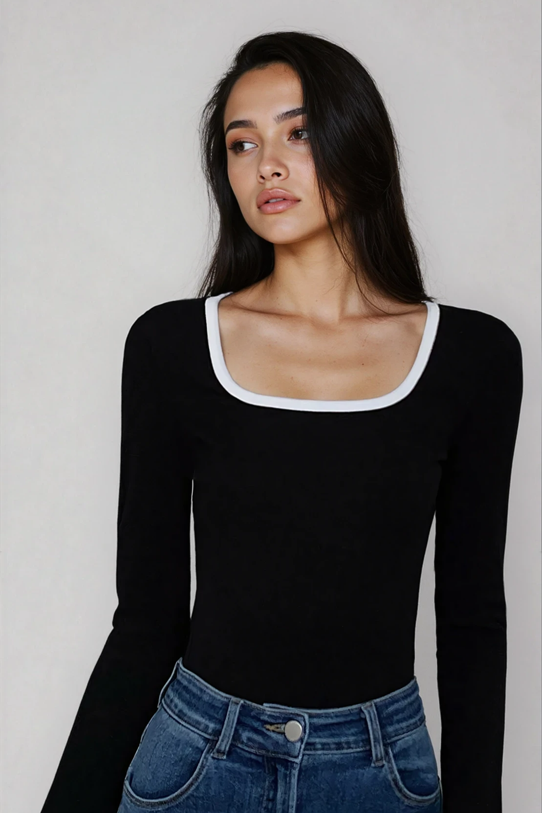 Square Neck Contrast Trim Top