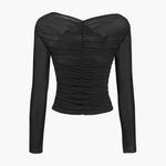 Sheer Mesh Ruched Long Sleeve Top