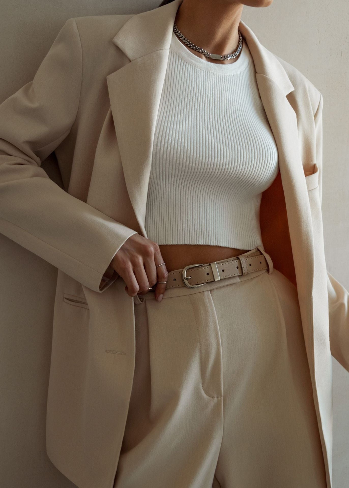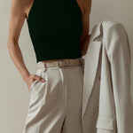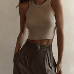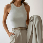 show ▼Effortless form meets everyday functionality. This softly sculpted ribbed tank is designed with a snug stretch fit and a high neckline that accentuates the shoulders—ideal for layering or wearing solo on warm days.