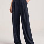 Effortless tailoring with a breezy silhouette. These high-waisted wide-leg trousers are crafted for elevated comfort with a softly structured shape and subtle pleat detailing—ideal for laid-back weekends or dressed-up errands.