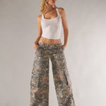 show ▼Designed for comfort with a playful twist. These camo cargo pants feature a relaxed wide-leg silhouette and utility pockets for a laid-back streetwear vibe—perfect for weekend errands or casual hangouts.