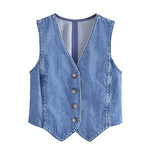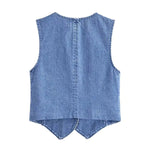 show ▼A fresh take on denim that redefines casual cool. This waistcoat blends structure and ease in a way that feels both elevated and laid-back—perfect for effortless styling through the seasons. Pair it with the matching skirt or layer over a tee for that off-duty edge.
