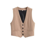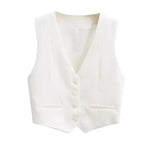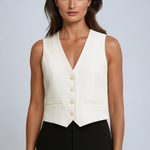 show ▼A sleek nod to menswear tailoring, this vest offers endless styling potential—whether layered over a crisp shirt or worn solo for a bold statement. Designed to bring structure and versatility to your wardrobe, it’s the kind of staple that works from day to night with effortless polish.