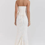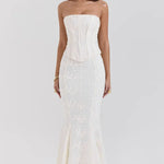 show ▼Graceful and unforgettable. This strapless mermaid gown is adorned with intricate embroidery and a corset-style bodice, blending timeless romance with modern refinement for your most special occasions.