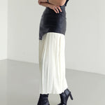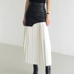show ▼Where edgy meets elegance. This statement-making maxi skirt features a sleek faux leather upper and soft chiffon pleats, designed in a unique patchwork silhouette. The asymmetrical contrast adds instant dimension and interest to any outfit—perfect for those who want to stand out without saying a word.