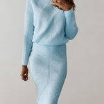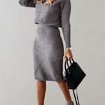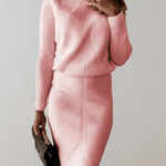 show ▼Effortless elegance meets cozy sophistication. This ribbed knit two-piece set features a high-neck sweater and a fitted midi skirt, designed to flatter the silhouette while offering ultimate comfort. The soft texture and subtle chevron pattern add dimension to the look—perfect for both relaxed weekends and chic city days.
