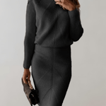 Two-Piece Knit Set With Turtleneck Sweater And Slim Skirt