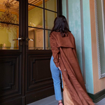 show ▼Crafted for effortless elegance, this longline suede trench is a statement in refined outerwear. With its double-breasted silhouette, flowing drape and subtle structure, it offers warmth without bulk—perfect for transitional layering and polished day-to-night looks..
