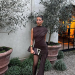 Asymmetric Ruched Chocolate Brown Mini Dress