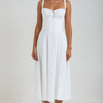 show ▼Channelling effortless charm and timeless femininity, this corset dress is made to turn heads. With a structured bodice and flared midi skirt, it captures a romantic yet modern silhouette—perfect for summer evenings and special occasions.