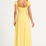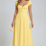 Softly feminine and endlessly flattering, this empire-waist maxi dress radiates warm-weather charm. With its romantic neckline and puff sleeves, it’s made for sun-drenched days.