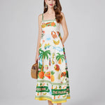 show â–¼Bring vacation vibes wherever you go. The Paradise Inn Printed Dress features a vibrant tropical print with playful motifs and a breezy A-line silhouette. The lightweight fabric and delicate spaghetti straps create an effortlessly chic look, perfect for sunny days and summer getaways.
