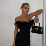 show ▼Dramatic, elegant, and undeniably alluring — this off-shoulder mini dress brings Old Hollywood glamour into the modern era. Designed with a sleek silhouette and adorned with soft feather trim along the neckline, it exudes sophistication with a touch of playful seduction. Perfect for evenings that call for attention and confidence.
