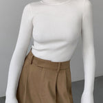 Designed for everyday elegance, this finely ribbed high neck top blends simplicity with sophistication. The figure-hugging silhouette and soft stretch knit make it a timeless wardrobe essential—perfect for layering or styling solo.