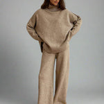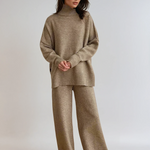 Perfect for layering into laid-back days. This soft knit lounge set features a slouchy turtleneck and wide-leg pants in a cosy, textured finish—designed for effortless comfort from morning coffee to slow evenings in.